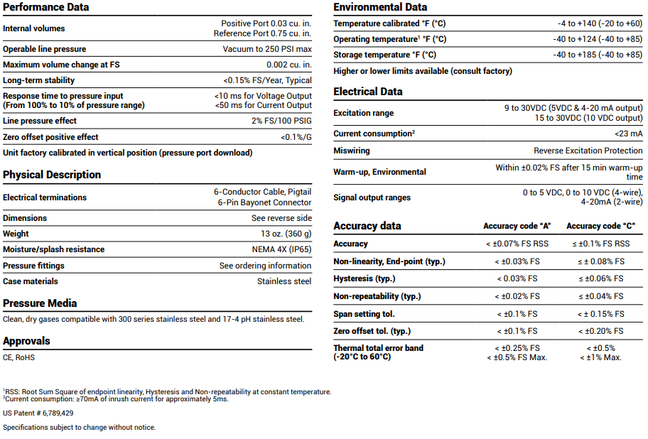 Low differential, ±0.07% FS accuracy, ideal for the Test & Measurement industry