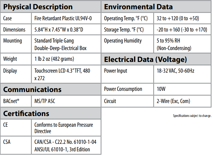 The Setra MRMS provides a central location to view critical room conditions for up to eight rooms with configurable audible/visual alarms. The MRMS’ 4.3” color LCD touchscreen is easy to navigate and ideal for any healthcare facility that needs to monitor critical room status from a central nurses location. The MRMS significantly reduces installation setup through its Auto-Discover feature, which automatically finds and connects to other Setra BACnet products and imports all MAC addresses, BACnet objects, naming conventions and other setup parameters.