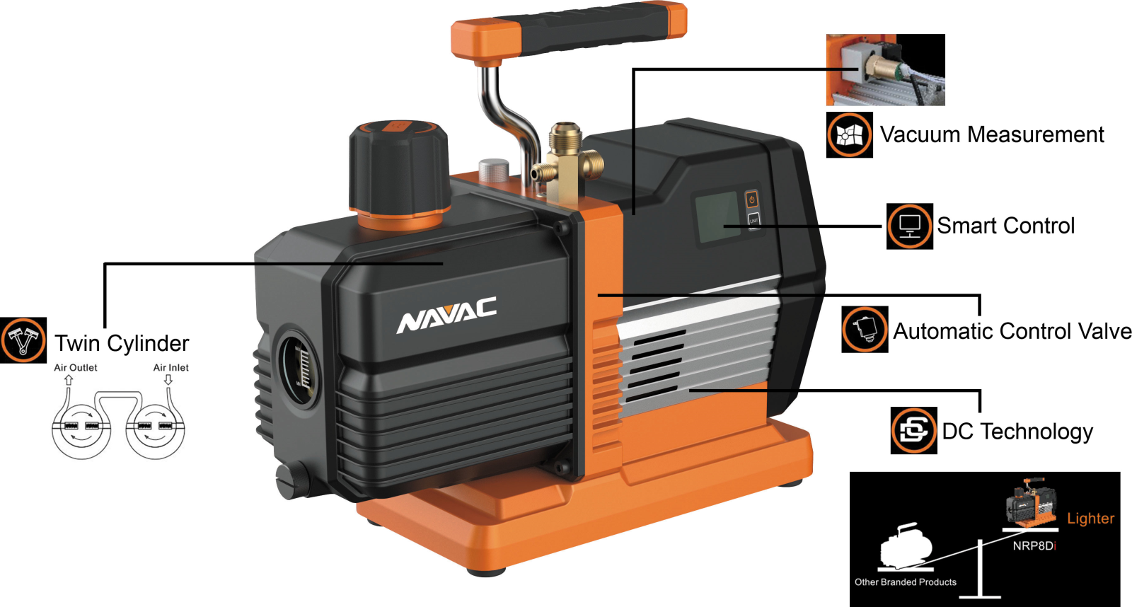 • Automatic control valve - prevent oil backflow, preserve vacuum